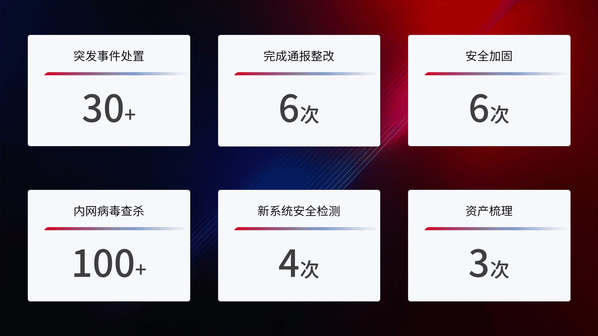 网络安全加固与风险管理:通过技术加固手段,,,如加强区域隔离,,缩减攻击内网横向移动的范围;优化现有网络安全管理制度,,降低网络威胁暴露面,,,,减少被黑客攻击的可能性。。
