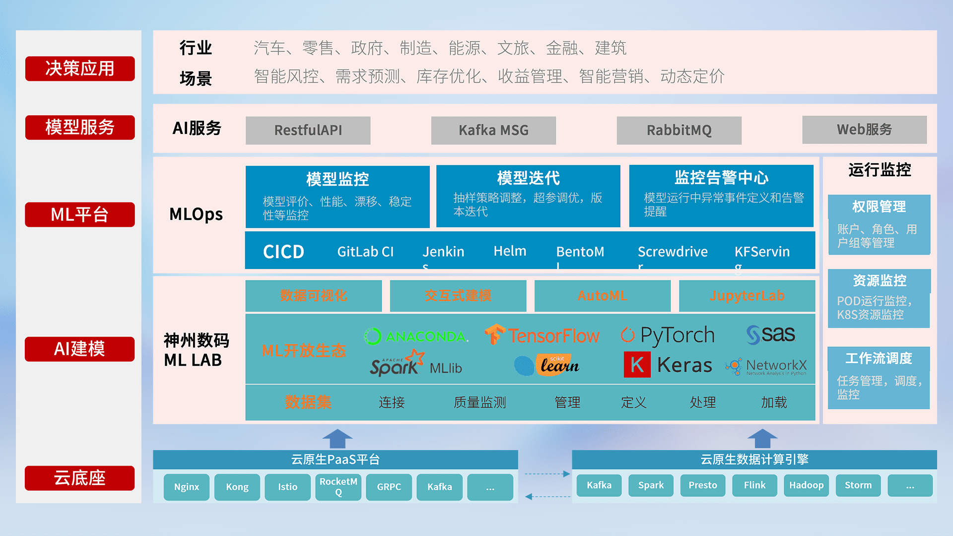 数据+模型双引擎驱动,,面向智能服务场景,,,,快速灵活利用AI技术,,,,支持业务决策,,,助力企业智能化转型破局。。。。